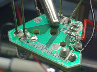 And so, I continued with the desoldering and soldering. You have to be very fast to do this so that the heat does not destroy the board and unglue the copper tracks.