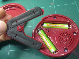 The toy takes two AAA batteries which is good because I was afraid it would be using those button cells. Nice thing is, they added some spongy material for the cover.