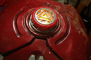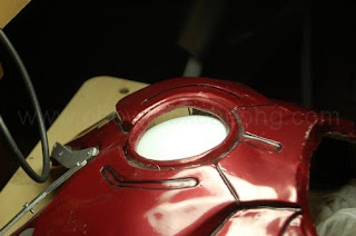 Ah, the magic of illusion. Behind the armour, you can see the arc reator. I was told its some sort of a torch lamp. After a premilinary look, I now know which area to work on, which is at the 'V' shape of the neck since that area is flat.