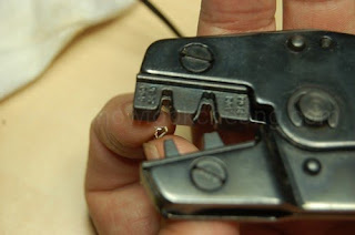 With the osldering done, I now use the crimp on the red/white cable which is attached to the toy.