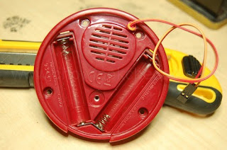 Remember, with this modification, it is not adviseable to put the two AAA batteries into the toy. So, you have to use the external batteries. Here, I am testing the circuit before I coninue with the next stage.