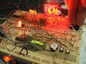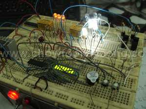The circuits for the Phaser Rifle's powerbar is ready. When you first connect the batteries to it, you will hear a beep from the rifle (but nothing lights up) to indicate that it is on stand-by mode. When you press the left button (Star Trek:Nemesis) it will light up in sequence from left to right, and then after a one second delay, it goes back to the left and stays at the first setting. By now, the rifle would be ready for use. The three red LEDs at the rifle's side would be lit as well. You can adjust the power by using the left and right buttons, each press would have a beep. I have added another feature where if you press both buttons together, there would be a long beep and the rifle will go off-line. (Then you would have to press a hidden reset switch to reactivate the rifle again).